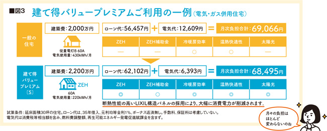 同社の試算によると、一般的な規模の戸建て住宅であれば、住宅ローン(建物のみ)と電気代で月7万円以内の支払いでZEHを手に入れることが可能だという(図3)。そのうえ、国の補助金(2018年度のZEH補助金は70万円)も利用できる。