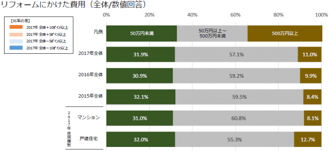 リフォーム会社紹介サイト「ホームプロ」を運営するホームプロ(東京都中央区)は3月26日、2017年のホームプロ利用者データ集計調査の結果を発表した。