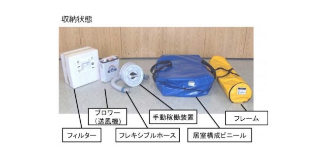 テント内ではガスマスクや防護服を着用する必要がなく、家具や備蓄を運び込んだうえで電源を入れシステムを起動させれば約15〜20分でろ過済みの清浄空気がテント内を満たす。