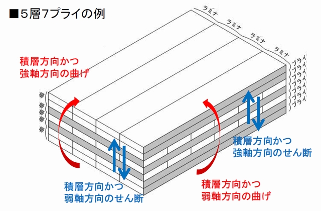 具体的には、積層方向かつ強軸方向については、5層5プライ、5層7プライに加え、3層3プライと3層4プライの基準強度が、積層方向かつ弱軸方向については3層3プライ、3層4プライ、7層7プライに加え、5層5プライと5層7プライの基準強度が定められた。