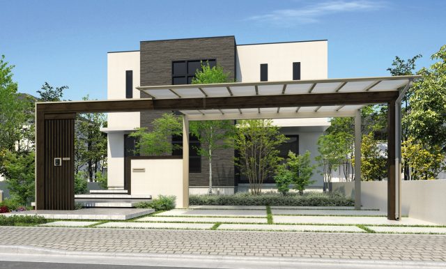 また、駐車スペースをファサード空間として演出できるオプションアイテムもラインアップした。「梁下スクリーン」は、カーポートの梁下に取り付けるたて格子のスクリーン(35x75)で、最大14本まで設置可能。LED照明内蔵のガラスパネルや表札・ポスト・照明・インターホンと組み合わせることもできる。