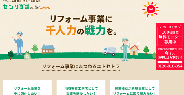 ラン・リグ(東京都渋谷区)は、リフォーム大手のニッカホームグループ(名古屋市)の「ノウハウ」「仕入れ」「人材」を活用できる会員制ネットワーク「センリョク with ニッカホーム」の提供を開始した。