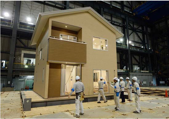 実験は、京都大学教授・五十田博氏をアドバイザーに2017年10月20日に実施。「同社が販売する標準仕様の家(A棟)」と「建築基準法の定める耐震性能を満たす家(B棟)」の2棟に同時に加振し損傷の差を検証したところ、B棟が3回目の加振で倒壊と区分されたのに対し、A棟は構造的な性能の低下がほぼ認められないという結果になった。このことから、同社の標準仕様の住宅は連続する大規模地震に対しても十分な余力があり、継続使用が可能であることが実証されたとしている。