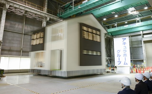 アキュラホーム(東京都新宿区)は5月8日、アキュラホームグループ創業40周年事業の一環として3月に実施した「実物大耐震実験」の結果を発表した。実験では3日間で、日本国内や世界で観測された地震波と今後起こりうると予測される地震波など、震度7クラスの地震波計10種類を連続で加振。構造体については接合部の緩み、金物の変形、材の破損、内装にも損傷などが全く見られず、同社の注文住宅が地震発生後も安心して住み続けられる建物であることを実証した。