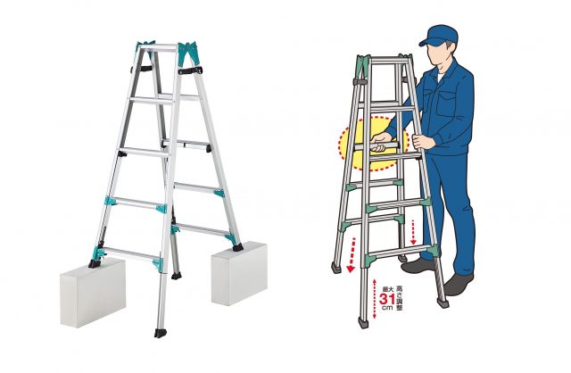 長谷川工業(大阪府大阪市)は5月21日、4脚同時に上部で伸縮作業ができるはしご兼用脚立「ニューラビット RYH」4機種を発売する。
