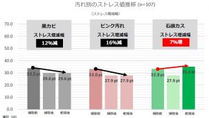 3カ月以内に生活環境に大きな変化があったと答えた人は、ストレスレベルが高い人が多い傾向にあることがわかった。また、ストレスを感じている人の6割以上が体に不調があると回答している。