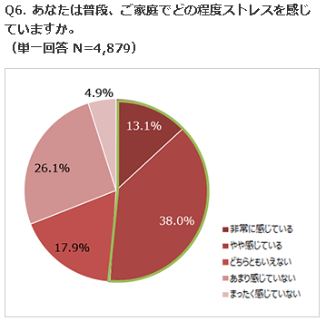 リンナイ(名古屋市)は5月15日、現代人のストレスの実態を探るために男女計4879人を対象に実施した「ストレス」に関する意識調査の結果を発表した。それによると、普段の生活でストレスを感じているのは全体の約7割、家庭でストレスを感じているのは約5割という結果になった。