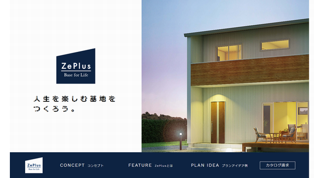 「ZePlus」は優れた耐震性を実現するとともに、高い断熱性や省エネ性能を有した構造材をフルパッケージ化。「賢く安心に暮らせる住まい」・「人がたくさん集まる住まい」など全6種類のプランを用意し、家族構成やライフスタイルなどに合わせた自由な住まいづくりを提案する。