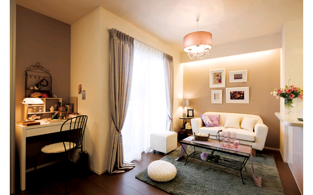 ホームセキュリティシステムなど防犯アイテムを標準搭載したほか、外出する際の「着替え、メーク、全身チェック」などの一連の流れや、帰宅後の「洗顔、入浴、着替え」などの流れを、スピーディーに行える動線やアイテムを提案するなど、女性向けの提案を充実させている。
