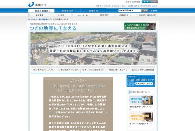 大建工業(大阪市北区)は、同社ホームページの住まいの防災情報に関するページをリニューアルした。「つぎの地震にそなえる」サイトとして公開した。