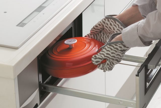 グリルを改良し、天井面に平面ヒーターを採用したことにより、業界最高という高さ101mmの庫内を実現。高さのある食材や市販の鍋を入れてグリル調理が可能なほか、天井面がフラットなので拭き掃除で簡単に手入れをすることができる。