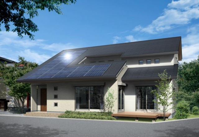 住宅は、高気密・高断熱の躯体で冷暖房効率を向上させた上、住設から電材、給湯設備・家電製品までにいたる同社の省エネ設備や、大屋根に太陽光発電システム6・235kW分を搭載する。