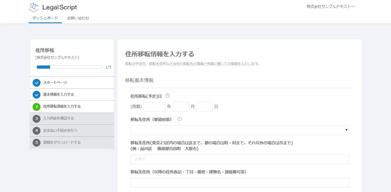 LegalScript(大阪市)は、本社オフィス移転などに伴う本店移転登記手続きに必要な申請書・各種議事録等添付書面をWEB上で作成できる「本店移転登記申請支援サービス」を開始した。司法書士などに依頼するよりも3万円程度安く実施できるという。