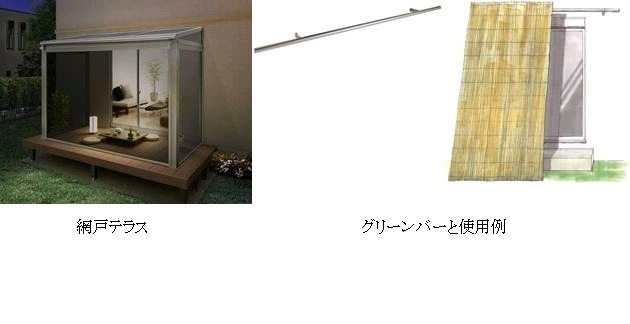 「グリーンバー」は、窓前の日よけアイテムの取り付けをサポートする商品。よしずの立てかけやすだれの吊り下げ、園芸ネットの取り付けなどをし易くする。長さが3000mm、出幅が183mm。価格は8925円。