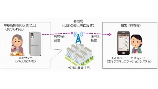 大阪府住宅供給公社(大阪市)は、VALUECARE(東京都中野区)、京セラコミュニケーションシステム(京都市)と、振動センサーとIoTネットワーク「Sigfox」を活用した高齢者見守りサービスの実証実験を行う。今回の高齢者見守りサービスは、装置と5年間の通信料込みで9800円(税別)で利用できるという。実証実験は全国初という。