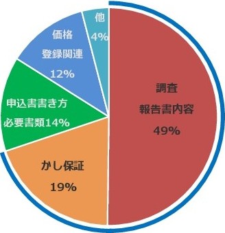 戸建て住宅の地盤調査・建物検査などを提供するジャパンホームシールド(東京都墨田区)は、4月に改正された宅地建物取引業法の建物状況調査について、同社に寄せられた約250件の問い合わせなどを集計し傾向をまとめた。問い合わせの約半数が「調査・報告書内容」に関することだった。約2割が「かし保証」などに関すること。同社はこの結果から、いまだ多くの不動産会社が建物状況調査の実務に不安を抱えているとしている。
