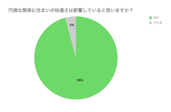 家づくりとインテリアデザインのプラットフォームを提供するHouzz Japan(東京都渋谷区)は7月19日、Houzzに登録している国内ユーザーを対象に実施した「家づくりとパートナーとの関係性調査」の結果を発表した。96%がパートナーとの円満な関係に「住まいの快適さが影響している」と回答した。