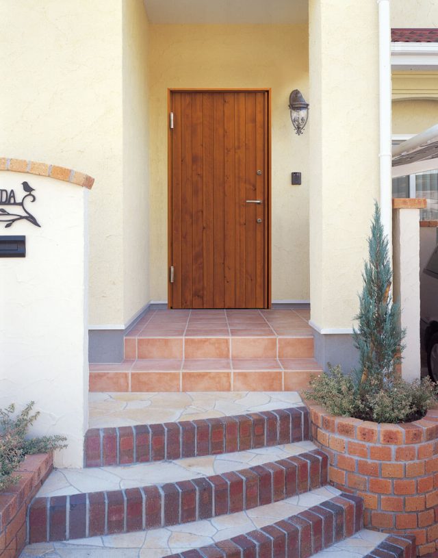 「MIYAMA桧 TF防火設備玄関ドアシリーズ」は、木造住宅専用の防火木製玄関ドア。こちらにも国産ヒノキを採用した。U値1.29W/m2K。67万8000円(金物加工・塗装済み)。