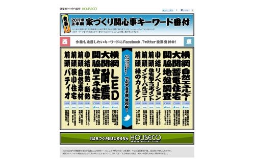 カヤック(神奈川県鎌倉市)が運営する建築家と施主のマッチングサイト「HOUSECO」は、「2011年上半期 家づくり関心事キーワード番付」を同サイト内で公開した。
