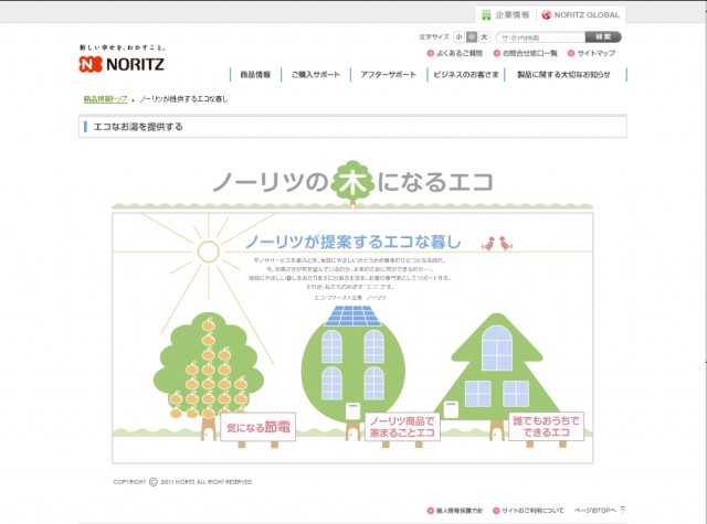 ノーリツ(兵庫県神戸市)は、自社のホームページをリニューアルし、太陽エネルギーの活用などをすすめる生活者向けの特設ページを設けた。