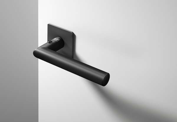 平面ハンドルシリーズは、シボ加工後に黒色塗装したマットな仕上がりのハンドル、防水キーロット。濃色・木目調の扉となじみ、点検口や配分電盤などの設備、スチール製家具などに使用できるとする。