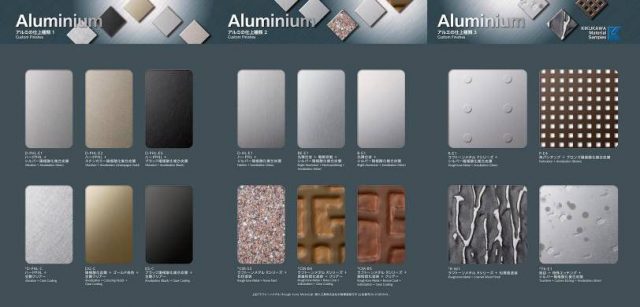 「アルミ・サンプル帳」のイメージ。16種類のうち9種類は新製品となっている