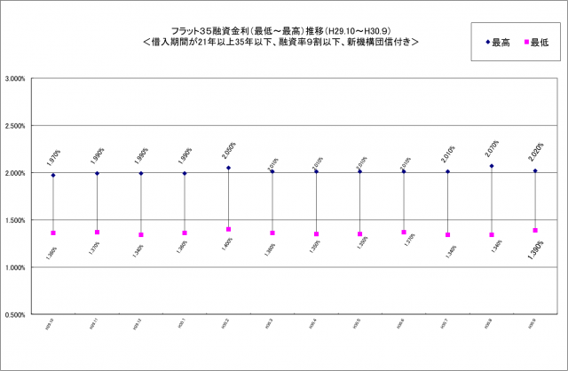 住宅金融支援機構(東京都文京区)が9月3日発表した、各金融機関の長期固定金利住宅ローン「フラット35」の9月分の金利は、主力の融資率9割以下・借入期間21年以上の場合で、年1.39%~年2.02%だった。最低金利の1.39%は3カ月ぶりの上昇となった。