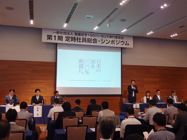 総会後のシンポジウムでは、「地震で人が死なない家をつくり続けるために」というテーマで、耐震化推進の課題や方策について意見を交わした。田鎖代表理事は「問題をしっかりみつけ、一緒に考えていく団体にしていきたい」と結んだ。
