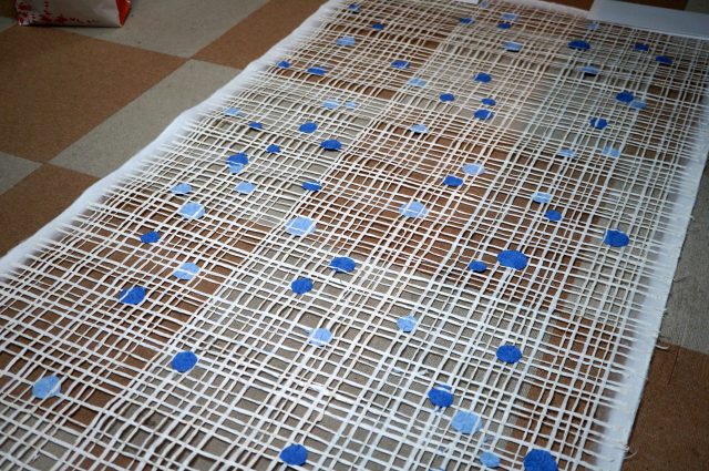 格子+水玉の襖紙