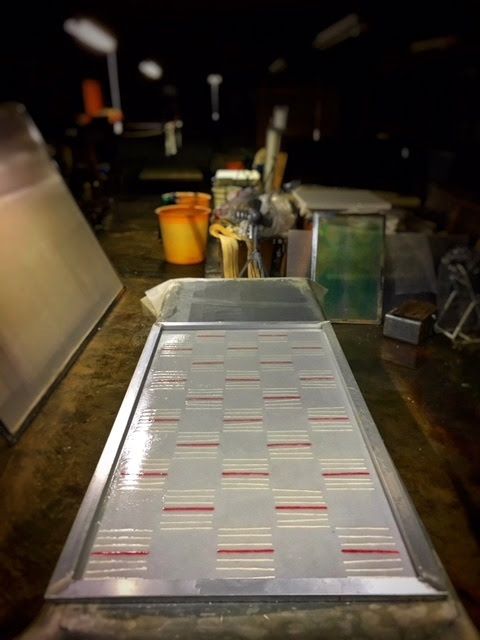 朱のラインが入った市松柄の襖紙