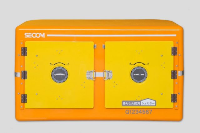 また、高い防水性を備え、津波・洪水で流されてもハッチ(扉)を上にして水に浮かぶ「自動スイング構造」を採用。内部から携帯電話やGPS端末が使用でき、オプションの位置情報提供システム「ココセコム」を利用することで、シェルターごと流された場合にも位置特定が可能になる。