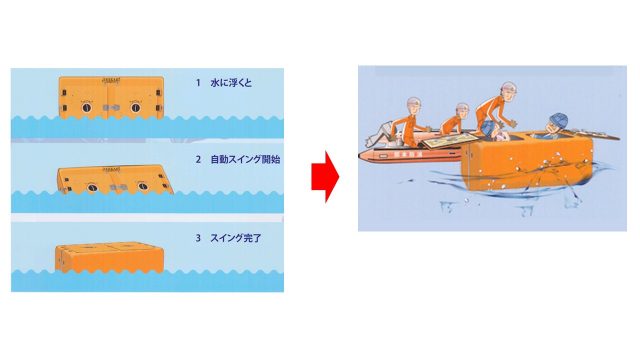 自動的に重心がスイングし、ハッチが上を向く構造。
