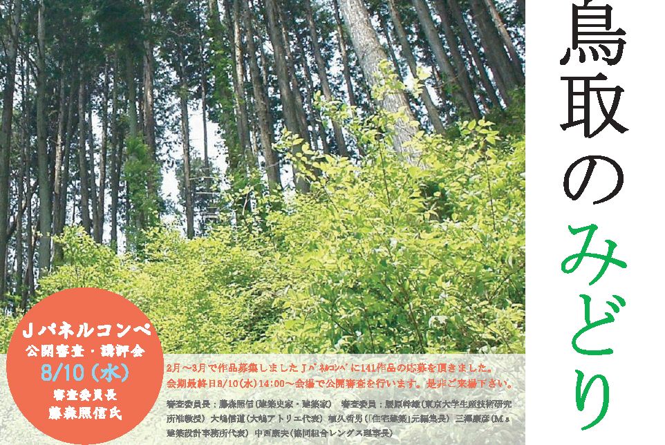 8月10日には、建築家・藤森照信さんを審査委員長に、Jパネル(スギの三層パネル)を使ったデザインコンペの公開審査を実施。同コンペは2月~3月に作品募集し、141点の応募があった。