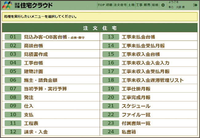 第一条件は、ストレスなく使えるクラウドシステムであること。これまで各部署が使い慣れた顧客管理、設計、見積・実行予算、会計などの各種パッケージソフトをやめて、1つに統合するわけですから、逆に仕事量が増えるようなシステムだけは避けたいと思いました。それから、いま当社が保管する3500件のオーナー様情報を含むデータを10年後、50年後、100年後と活かし続けたいので、システム会社の実績や信頼性もかなり重視しました。