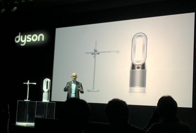 ダイソン(東京都千代田区)は9月14日、東京・渋谷において新製品発表会を開催した。そのなかで、空気中の花粉やVOCを検知してディスプレイ表示する空気清浄ファンヒーターと、自然光に合わせた色温度・明るさに調節できるLEDライトを公開した。