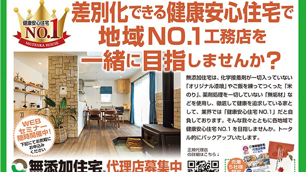 募集開始から限定10社(各都府県先着1社)を代理店契約金0円とし、特別条件でパートナーを募る。中小規模の設計、建築、デザイン会社等からの参画を想定する。代理店募集エリアは、北海道・沖縄県を除く全国。11社目以降の代理店契約金は税別30万円。月々のロイヤルティは不要。保証金は50万円。商標使用料と広告分担金はそれぞれ年額12万円(税別)。