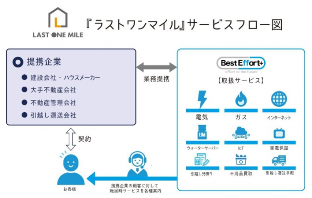 コールセンターを運営するBestエフォート(東京都豊島区)は、リノベーションサービスを提供するリノべる(東京都渋谷区)と業務提携を締結し、10月6日からリノベるの顧客に同社の転居支援サービス「ラストワンマイル」を提供する。