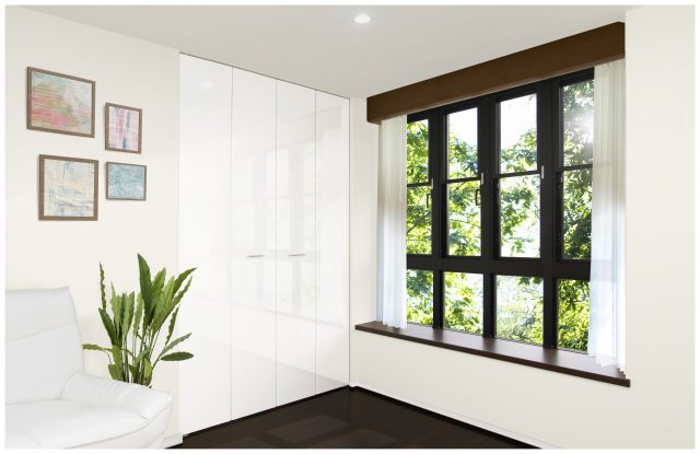 このほか、鏡面調仕上げのクローゼット「MP-4型」を発売。4層の樹脂からなるハイグロスシートによりキズ・汚れから守る。2色。