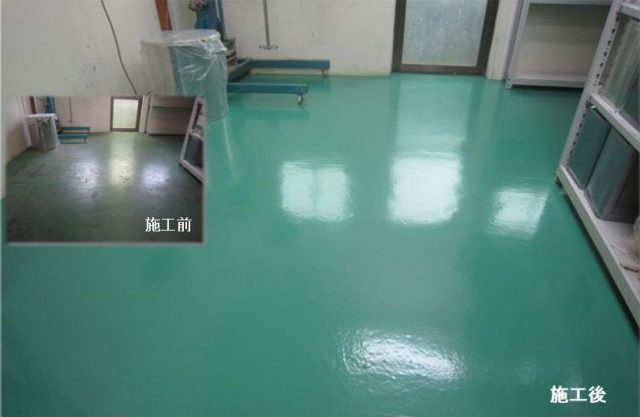 倉庫や工場の床に、耐薬品・抗菌・防カビ・不燃・ノンスリップ機能をもたせる保護フィルム。フル稼働で密閉された工場床でも短時間で施工できるという。