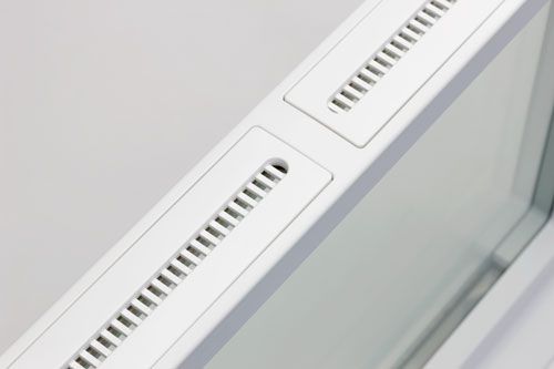 ヒーター機能と透明ガラス2枚を組み合わせた構成。その2枚のガラスの間に下部から冷気を引き込んで暖め、上部から暖気を放出して、人が暖かさを感じる約1.5mの高さで対流を起こす。