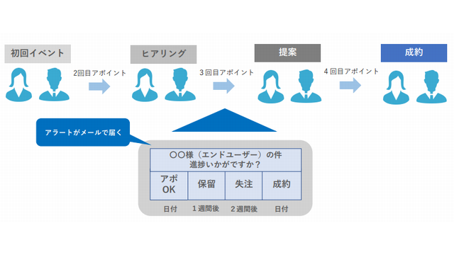 SMS(ショートメッセージサービス)配信機能も搭載。管理画面から見込み客の個人携帯電話へ直接SMSとして 情報を発信することができる。アンケート取得の際にアドレスが把握できていない、ダイレクトメールよりも早く情報発信したいという場合に有効活用できる。メールによる情報発信に比べ、到着率も高いという。