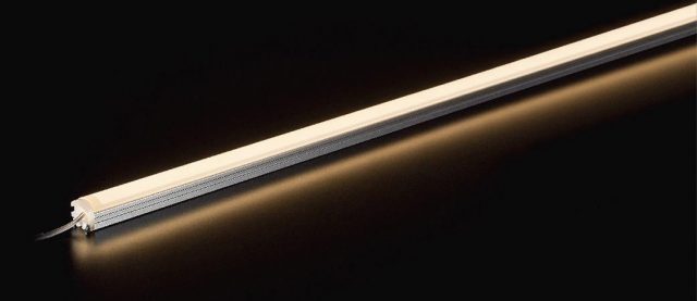 電源を別置きにすることで、本体をスリム化。8mm幅の「S08タイプ」(約1000lm/m)と、約15mm幅の「S15タイプ(約1600lm/m)の2種類の明るさタイプを用意した。
