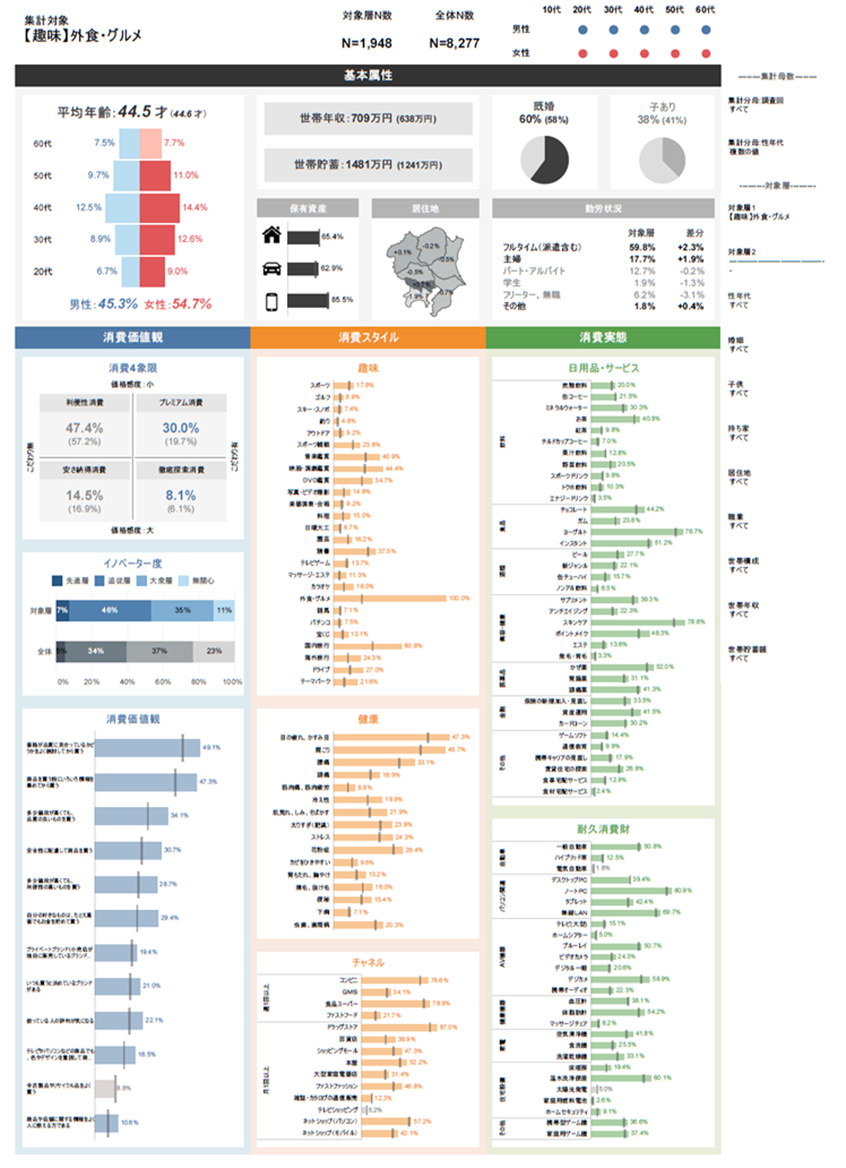 野村総合研究所(東京都千代田区)は10月26日、生活者の消費価値観・行動やメディア接触状況をひと目で把握できるマーケティング支援ツール「Insight Palette」(インサイトパレット)の提供を開始した。