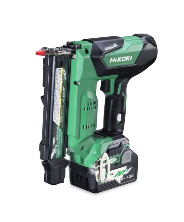 工機ホールディングス(東京都港区)は、36V蓄電池を搭載し、軽快な打ち込みの「コードレス仕上釘打機 NT3640DA形」を10月30日に発売する。