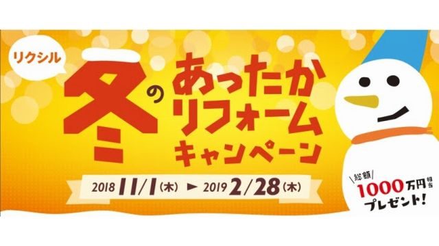LIXIL(東京都千代田区)は、結露軽減や断熱効果のある内窓「インプラス」など、簡単にリフォームでき、冬をより快適に過ごすためのアイテムを対象とした「LIXIL 冬のあったかリフォームキャンペーン」を開催する。期間中に対象商品を使ったリフォーム工事を実施し、応募した人の中から、抽選で120人に家電や商品券など総額1000万円の賞品をプレゼントする。キャンペーン開催期間は2018年11月1日~2019年2月28日。応募締め切りは3月15日。