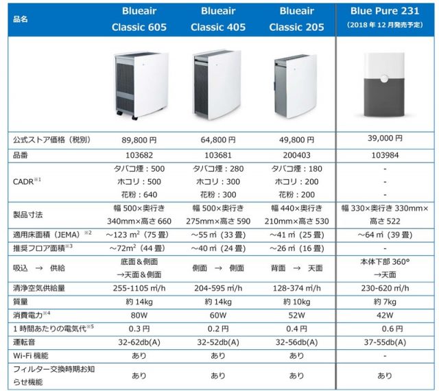 スタンダードシリーズの「Blueair Classic」には、普及価格帯となる605・405・205の3モデルを追加。0.1μmまでの有害物質を99.97%除去するハイスピード清浄が特徴となっている。既存の680i・480i・280iも求めやすい新価格に改定する。