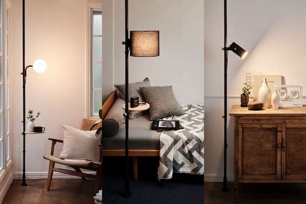 「そっと 寄り添う」をコンセプトに新発売するのは、縦に設置した「DRAW A LINE」シリーズの突っ張り棒に取り付けられる照明アクセサリーパーツ。高さやパーツの組み合わせが自由に選べるのが特徴。ランプアーム2種類、シェード2種類を展開する。