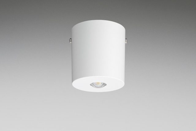 建設省告示第1830号改正に対応した電源別置型のLED非常用照明器具で、新商品は天井が高く、直付けが求められる場所向け。従来光源のハロゲン電球器具と比較して、消費電力を約5分の1に抑えられ、別置蓄電池の容量や予備電源設備のスペースも抑えられるという。
