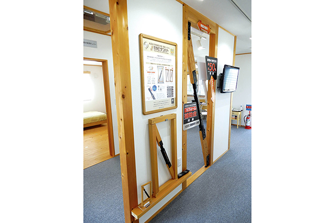 工務店などの皆さんに説明させていただく場合は、まず愛知県小牧市の住友理工小牧本社にある実験住宅に見学に来ていただいてご紹介しています。ここは地元の工務店さんに建てて頂いた実物大の木造2階建て住宅で、耐震と制震、免震の違いが一目でわかる模型や制震ダンパーの実物展示、制震目的以外の防音用デバイスとしての制振システムの体験もできて、「制震(制振)とは何か」を理解して頂くことが出来ます。