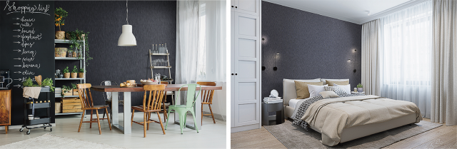 デニム生地特有の色落ちが少なく、耐摩耗性を大幅に向上させた新素材「シン・デニム」を壁紙として商品化したもの。キズに強く、クラックしにくいのも特長。